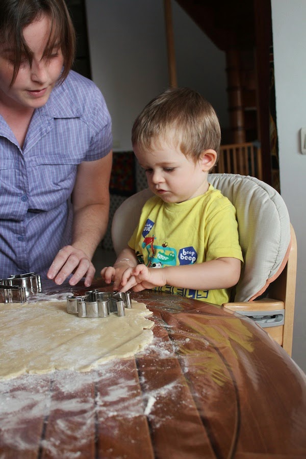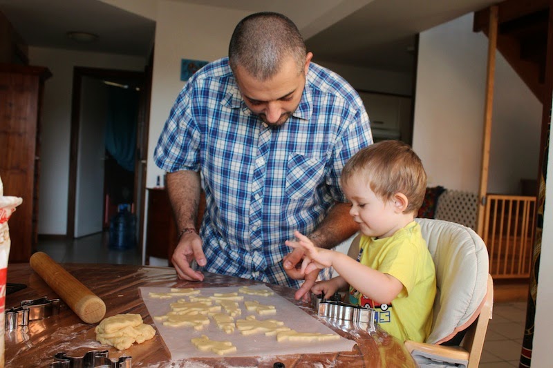 – APPELER son papa à l’aide pour enlever la pâte en trop (ben oui hein, j’suis encore un peu petit pour y arriver tout seul…)