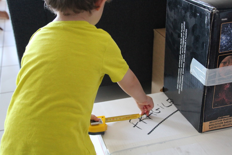 Après un tri efficace, des affaires bien empilées dans les cartons, avec une aide précieuse pour bien ranger et mesurer tout ce bric à brac