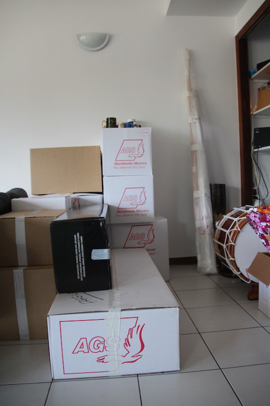 Vu d’ici tout parait très simple, sauf que… quand on fait un déménagement comme celui là, avec un passage de douane, il faut absolument lister le contenu de chaque carton. Comme nous partageons un conteneur, il faut numéroter chaque carton, faire un listing précis du contenu et mettre un prix en face de chaque affaire… autant dire qu’il faut être méthodique pour le remplissage !