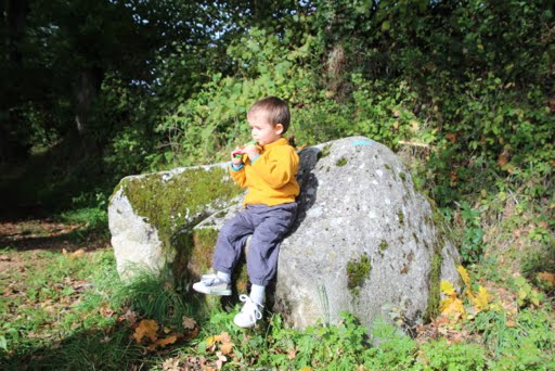 L’heure du goûter est arrivée, alors on trouve un chouette fauteuil pour faire une petite pause, on en profite pour ramasser quelques feuilles d’automne et quelques glands!!