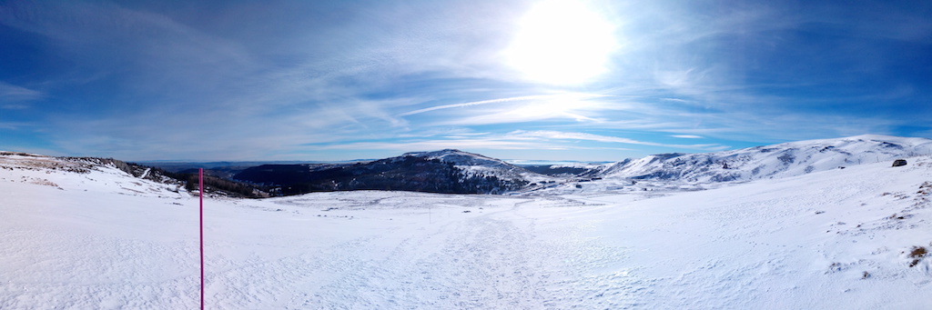 Cela nous permet d’avoir un peu plus de neige (pas sûr !!) mais d’avoir une superbe vue sur le Plomb du Cantal et les vallées environnantes…