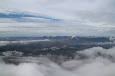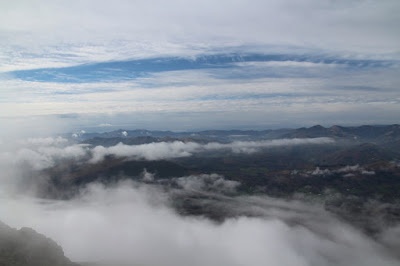 Quand nous arrivons, le ciel n’est pas dégagé, nous avons cependant de la chance car le soleil chasse les nuages et nous pouvons profiter d’un long moment au sommet avant qu’ils ne reprennent l’avantage.