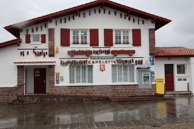 Et un village très connu pour ses fameux piments : Espelette !! Malheureusement la pluie nous a rattrapés et notre visite a dû être assez rapide tant la pluie était forte… C’est quand même marrant de voir des piments qui sèchent sur les façades des maisons. La fête du piment doit être originale !!