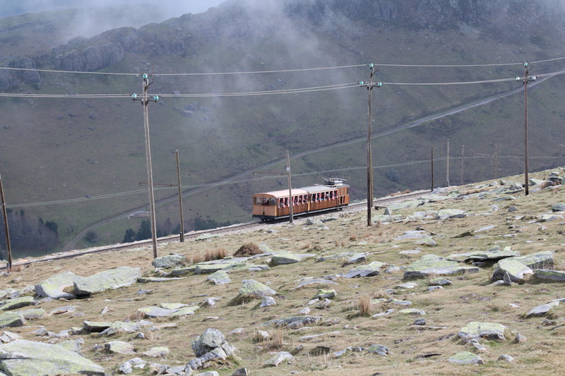 Nous pensions monter et descendre à pied (environ 2h30 de montée et 2h de descente et près de 700m de dénivelé), le problème c’est que cette randonnée est notée difficile car pour atteindre le sommet la pente est assez importante et glissante quand c’est mouillé. Comme il a plu toute la journée d’hier et que la pluie est prévue aujourd’hui, nous préférons la deuxième option : le train.