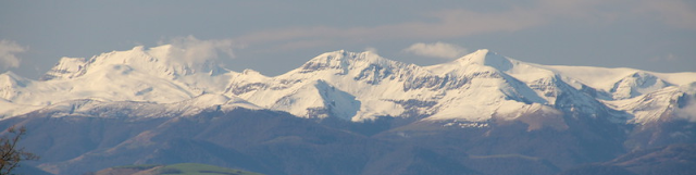 Nous avons trouvé un endroit assez sympa pour nous garer hier soir et ce matin c’est une carte postale qui apparait progressivement avec le lever du jour…. la chaîne des Pyrénées avec ses sommets enneigés !! Waou!!
