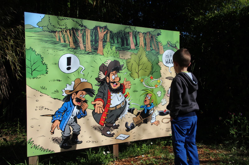 Il y a de grands panneaux de bande dessinée à chaque étape, créés par le dessinateur d’Iznogoud, Nicolas Tabary, les images sont très chouettes!