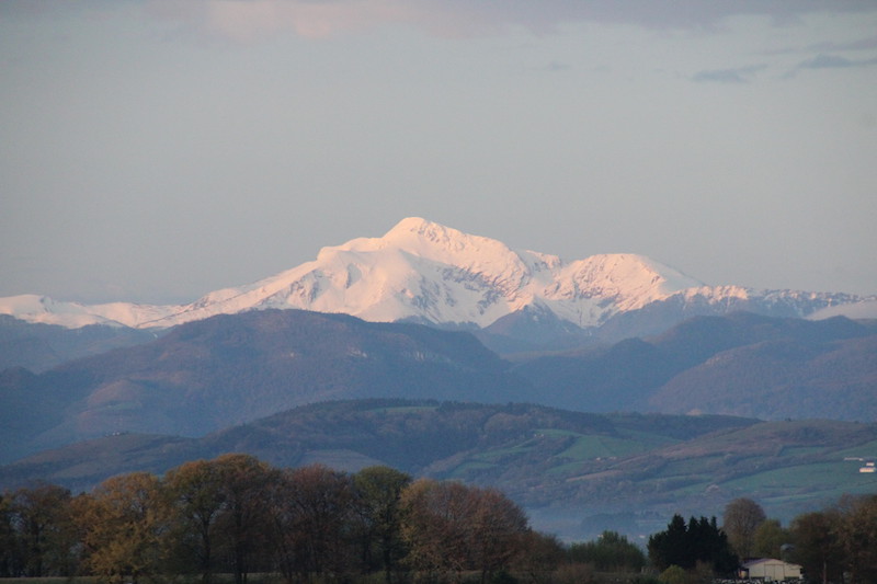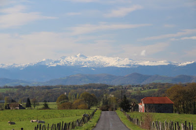 Nous avons trouvé un endroit assez sympa pour nous garer hier soir et ce matin c’est une carte postale qui apparait progressivement avec le lever du jour…. la chaîne des Pyrénées avec ses sommets enneigés !! Waou!!