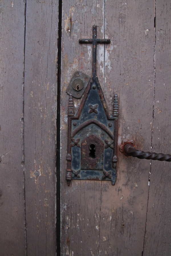 Pas de village médiéval sans église… et celle-ci fut reconstruite du temps de Saint-Louis, au 13° siècle! Et en plus elle a une serrure néo-gothique…et en plus celle-ci est en forme d’église…la classe quand même! Trop chouette!
