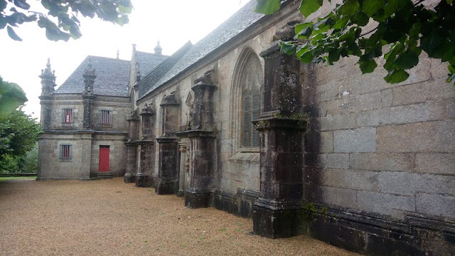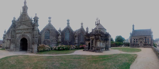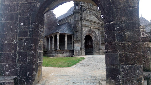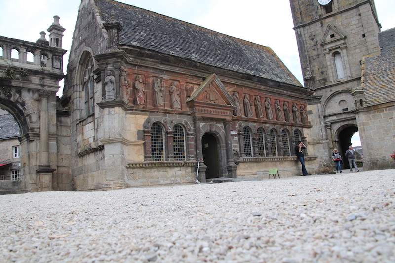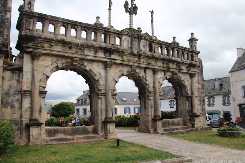 Alors voilà, les enclos paroissiaux sont des ensembles architecturaux constitués d’une église, d’un calvaire, d’un cimetière et d’un ossuaire, le tout entouré par un muret de pierres et ouvert par une arche triomphale.