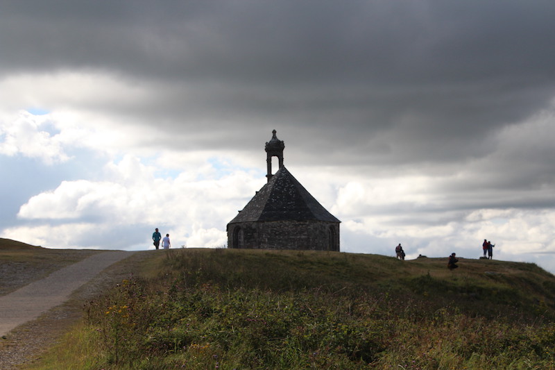 Nous commençons par aller au Mont Saint-Michel de Brasparts, à Saint-Rivoal (juste à côté des enclos paroissiaux…).