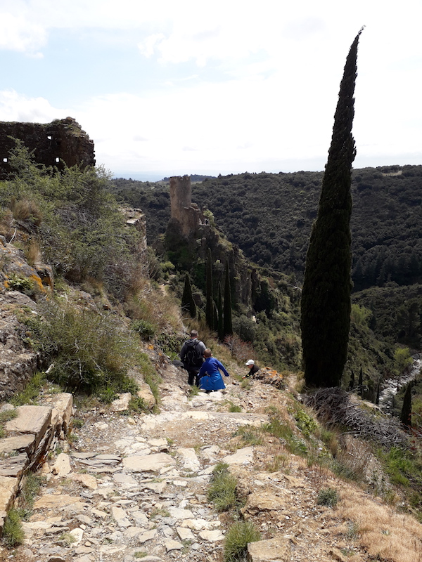 Nous décidons ensuite d’emprunter le nouveau chemin, celui qui relit Cabaret à Surdespine, mais en faisant le tour de la montagne, ça permet de faire une boucle plutôt que de revenir sur ses pas et surtout de voir ces châteaux sous un autre angle… (Ici Tour Régine et Surdéspine)