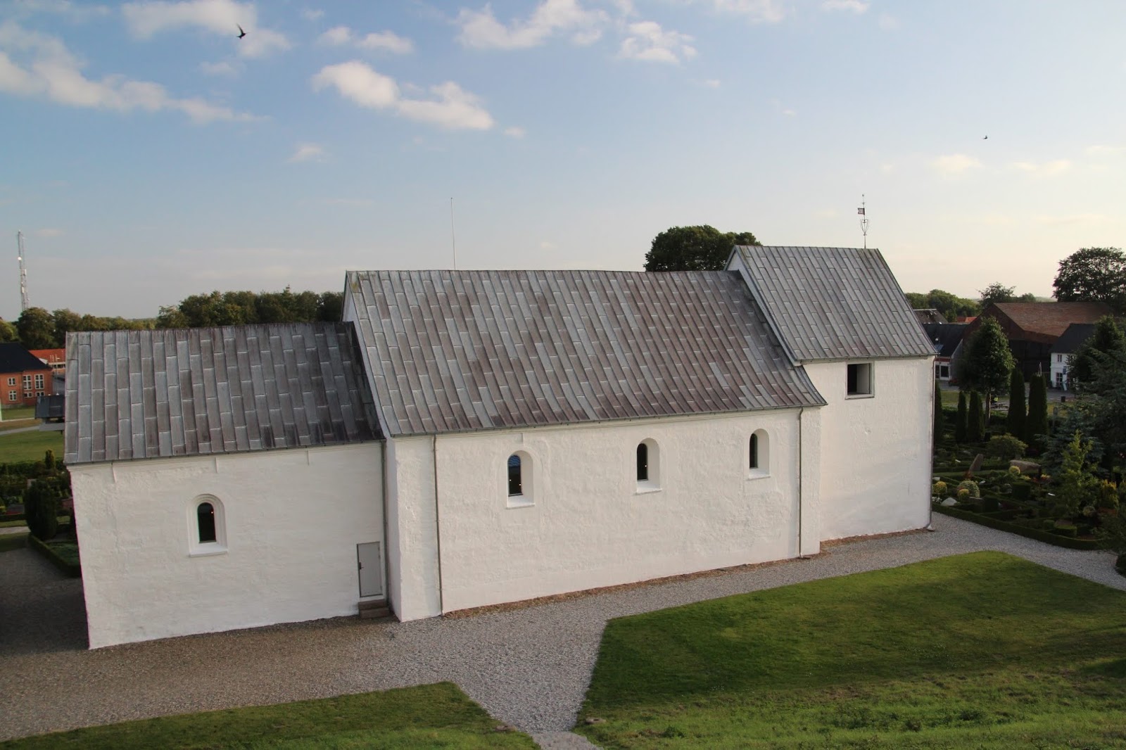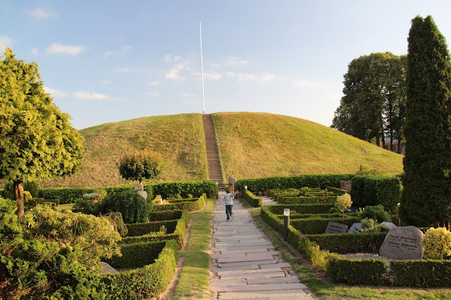 Deux tumulus « encadrent » de près une petite église et au pied de cette dernière se trouvent deux pierres runiques. Sur une de ces pierres les inscriptions témoignent de la conversion au christianisme du Roi Harald. Il s’agit là de l’acte de naissance du Danemark pour les danois, si bien qu’elle a été reproduite sur les passeports Danois pendant de nombreuses années ! 🙂