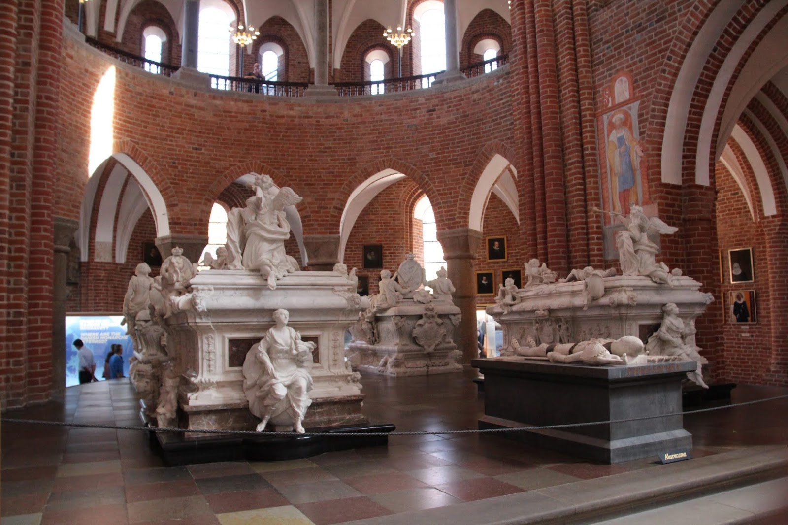 Allons faire le tour de cet ouvrage… Ici sont inhumés 39 monarques du royaume du Danemark, certains avec leurs familles! C’est véritablement un festival de tombeaux plus gigantesques les uns que les autres! 😉