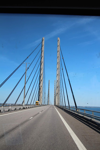 Aller, il est temps de filer en Suède… Nous empruntons le deuxième pont payant, le Øresund. Il s’agit en fait d’un ouvrage en deux parties lui aussi, mais cette fois il s’agit d’un pont à haubans (comme le viaduc de Millau) et d’un tunnel !