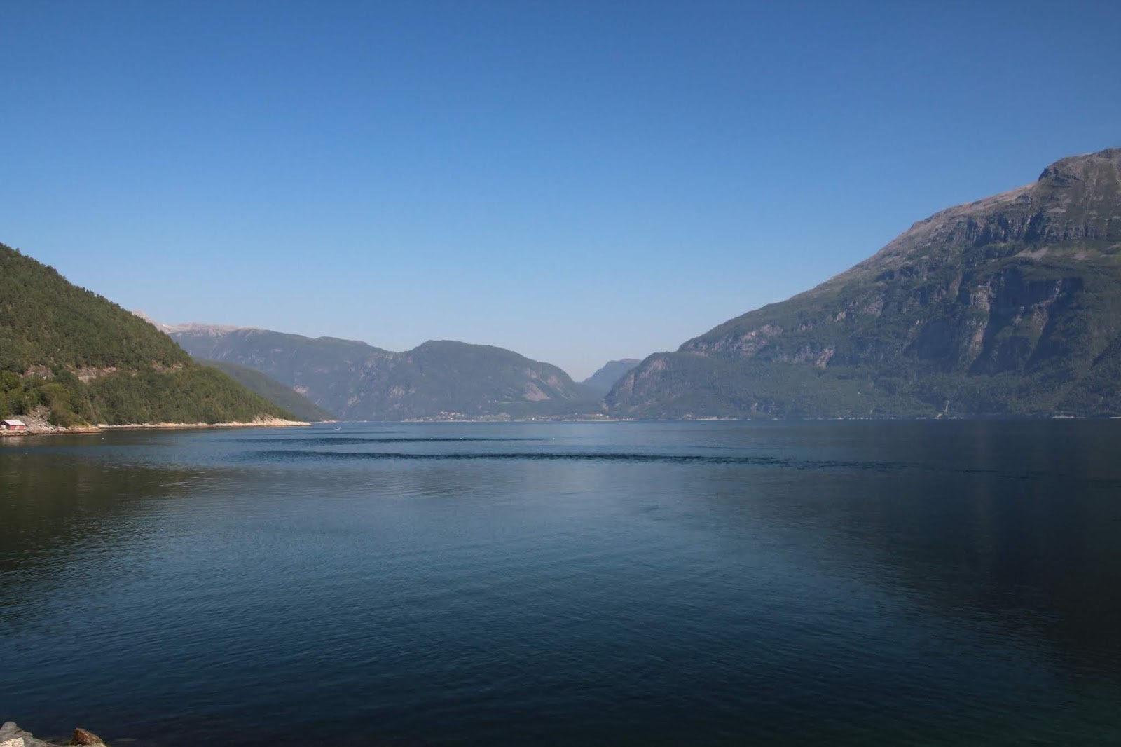 Nous traversons plusieurs tunnels, dont un de 6km de long, avant d’arriver sur la côte nord du Langfjorden, à partir de la ville d’Eidsvåg.