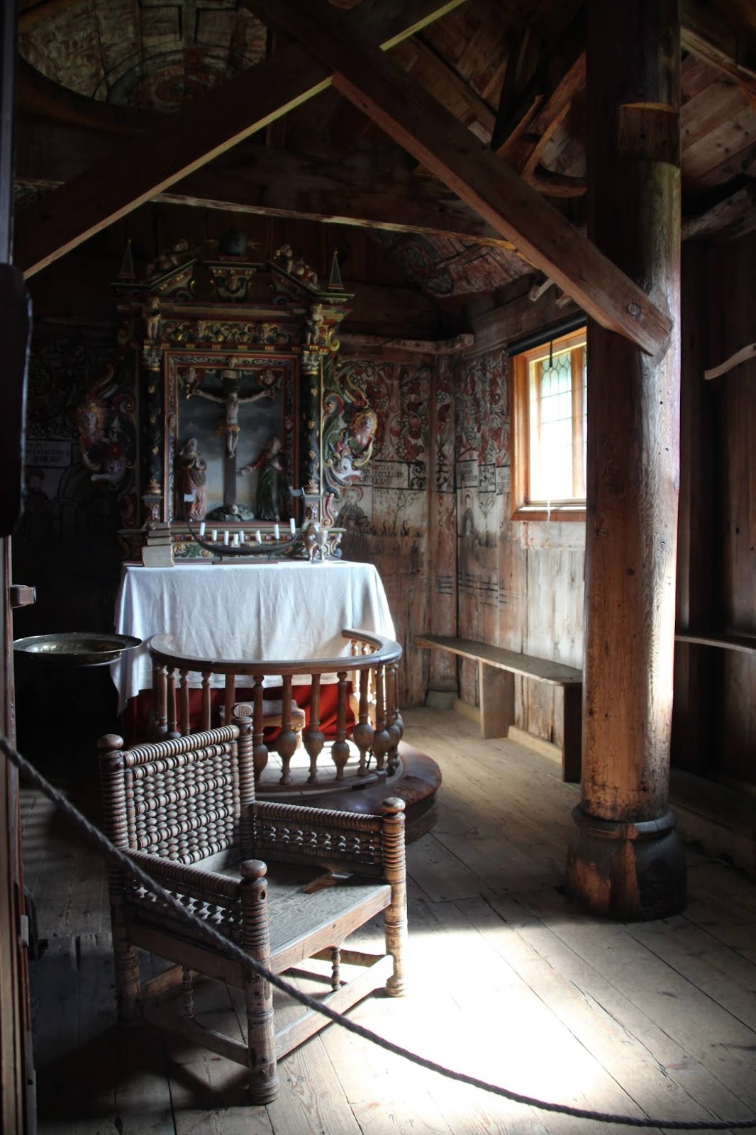 Et d’explorer son intérieur… Assez cosi encore une fois, comme souvent dans ces églises en bois, il règne une atmosphère particulière…