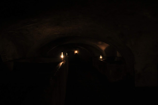 La visite se fait dans le noir, il faut avoir une lampe de poche pour déambuler dans cet espace (un distributeur automatique en vend à l’entrée! 😛) c’est une ambiance très particulière et….bien glauque !