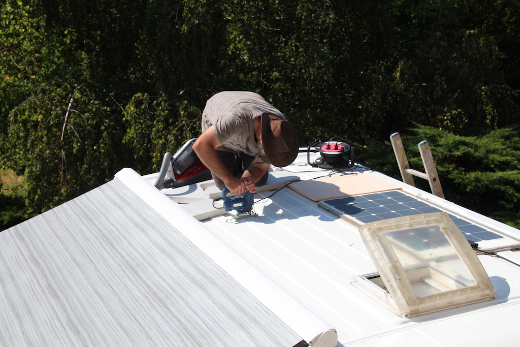 Voilà un moment que nous pensions à mettre un deuxième lanterneau sur le toit de notre Cassiopée, parce qu’il fait un peu chaud parfois et qu’avoir 2 lanterneau bah… ça permettrait de faire circuler l’air! Alors voilà, le grand jour est arrivé!